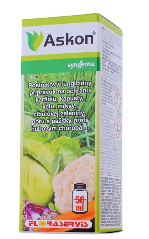 - Účinná látka: azoxystrobin 200 g/l, difenoconazole 125 g/l. Prípravok Askon obsahuje dve účinné látky: azoxystrobin a difenoconazole. Kombináciou týchto účinných látok je dosiahnutý nielen preventívny, ale aj kuratívny účinok proti širokému spektru hubových chorôb.