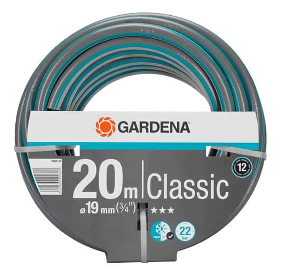 Tlakovo odolné GARDENA hadice Classic, ktoré udržujú svoj tvar vďaka vysoko kvalitnej textílii, neobsahujú škodlivé zmäkčovadlá (ftaláty menej ako 0,1%), kadmium, olovo a bárium (menej ako 0,1%) a samozrejme sú odolné voči UV žiareniu. V prípade potreby je možné spájať ich pomocou fitingov Original GARDENA System a prepojovacích zariadení. Sú to skvelé predpoklady pre jednoduché a flexibilné používanie vo vašej záhrade. Tlak, pri ktorom dôjde k prasknutiu: 22 barov. Záruka: 12 rokov.